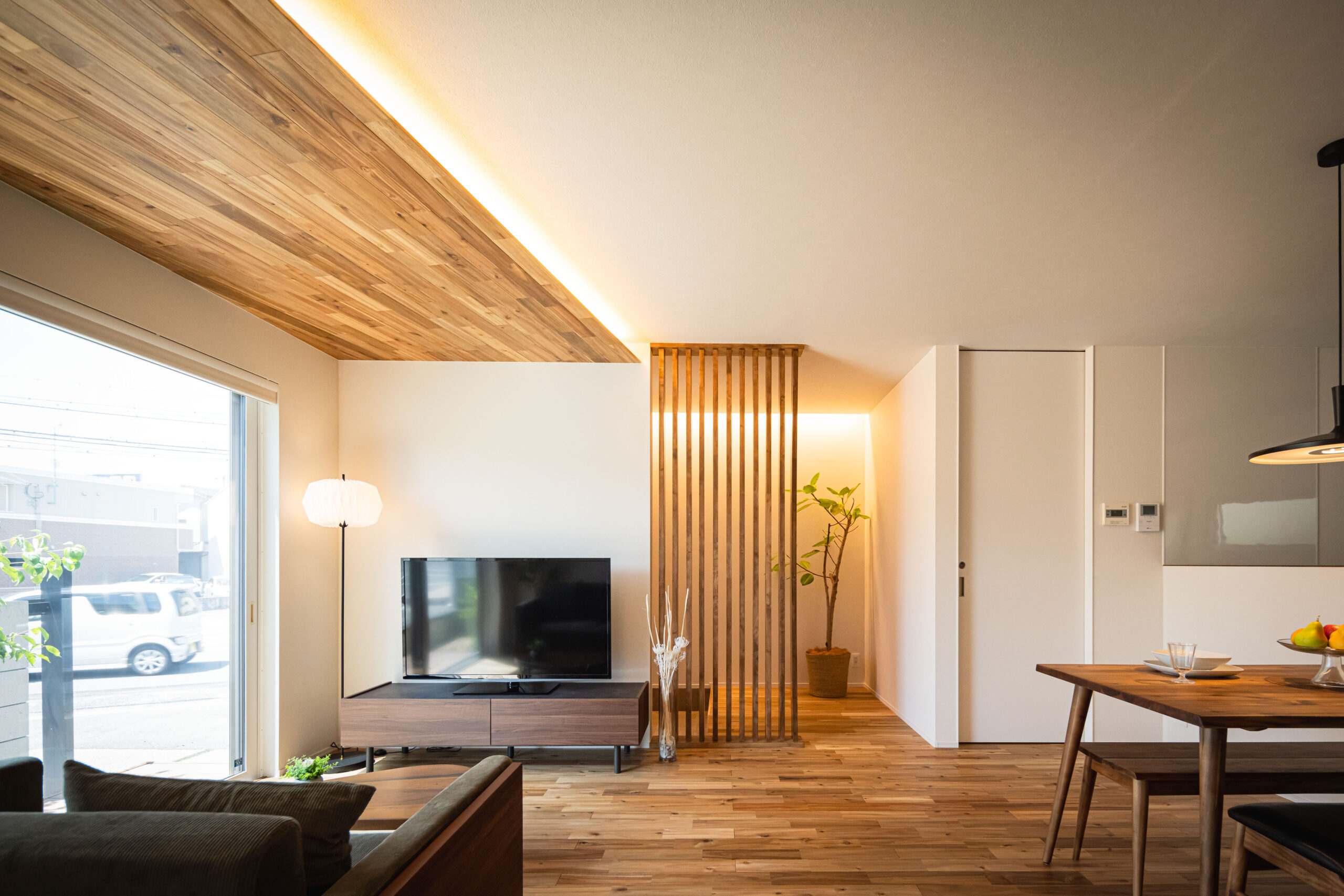 01 | アカシア無垢材がここちよい、16帖の寛ぎLDK